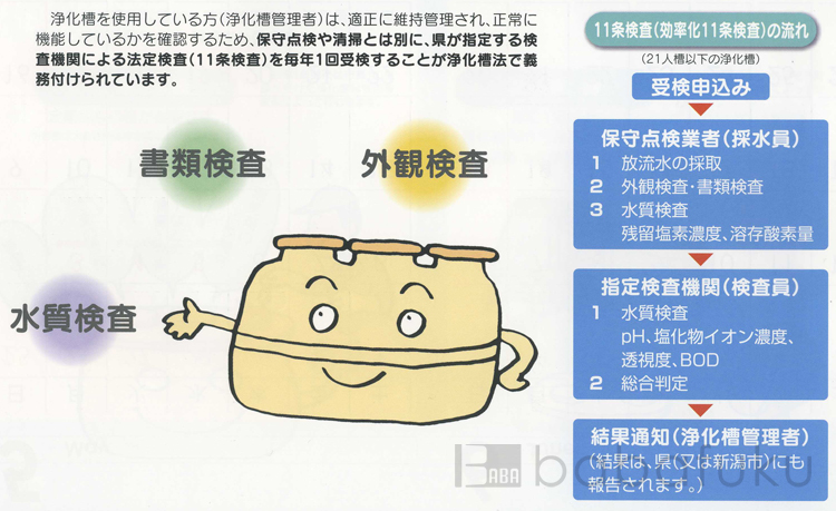 浄化槽の設置、保守点検、清掃が決められたとおりに行われているか検査する為の
