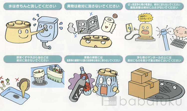 浄化槽を正しく維持管理して行く為には、日常の生活の中のちょっとした注意が必要です。