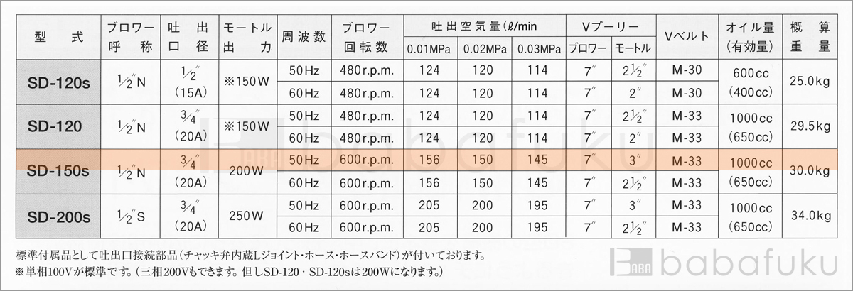 ご購入はこちら 50Hz/三相/東浜SD-150s