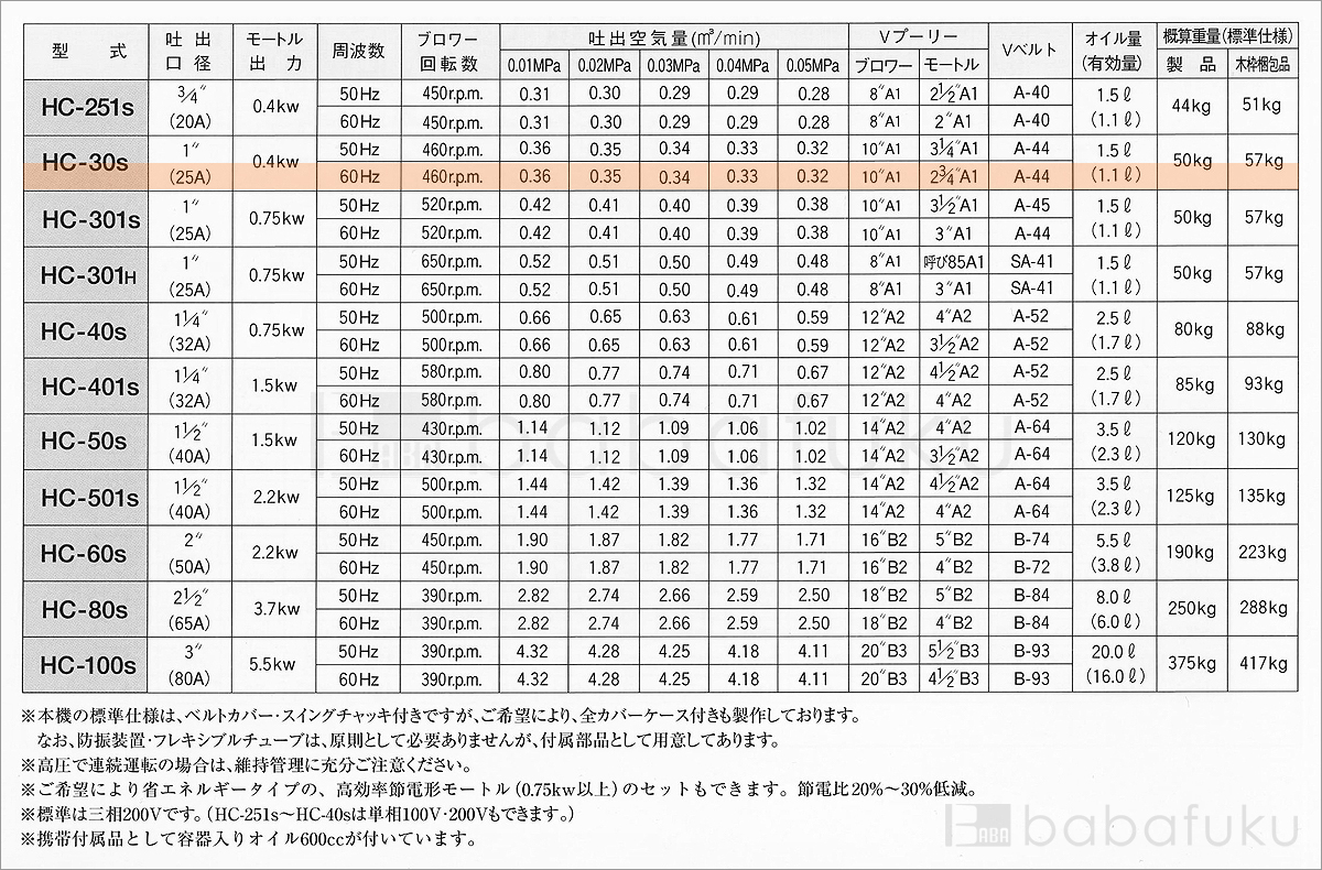 ご購入はこちら 60Hz/単相/東浜HC-30s/ベルトカバー