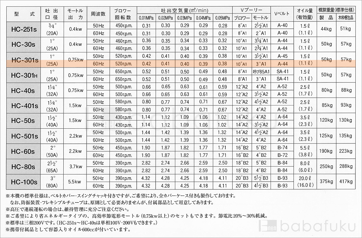 ご購入はこちら 60Hz/単相/東浜HC-301s/ベルトカバー