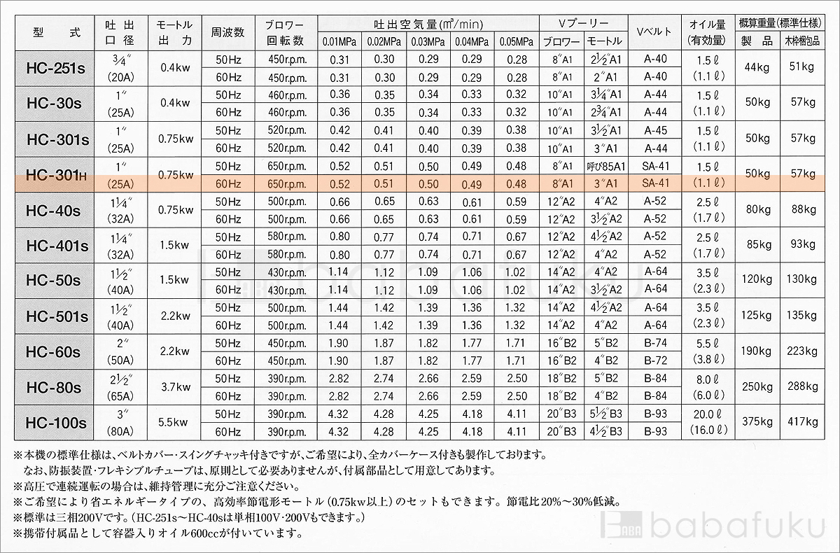 ご購入はこちら 60Hz/三相/東浜HC-301h/ベルトカバー