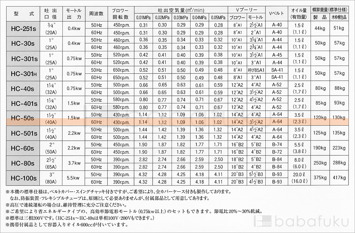 ご購入はこちら 60Hz/三相/東浜HC-50s/ベルトカバー