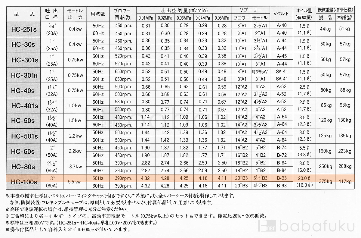 ご購入はこちら 50Hz/三相/東浜HC-100s/ベルトカバー